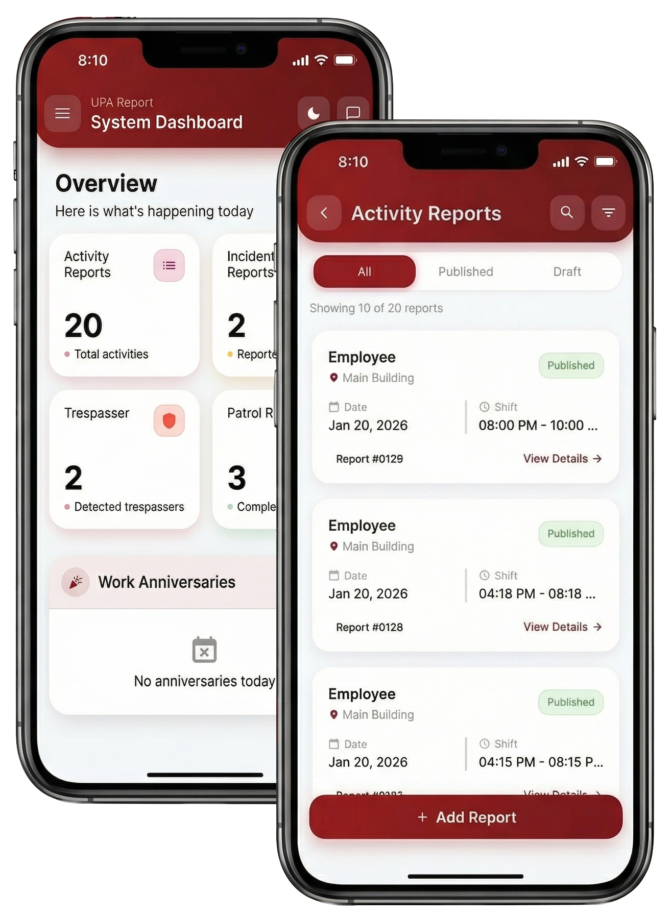 Whether you’re an employee submitting incident reports or a client reviewing security activity, the UPA app keeps everyone connected. Access real-time reports, review daily logs, and stay informed—anywhere, anytime.